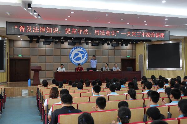 为全面提升辖区中小学平安校园建设,增强广大师生的法制观念和安全防护能力, 5月16日下午,兴丰派出所社区民警魏建军到大兴三中初中部,为广大师生进行了普及法律知识,提高守法、用法意识为主题的法制安全宣讲活动。 在宣讲过程中,民警魏建军从中学生要养成知法懂法、用法律武器保护自己的良好习惯到如何报警,从增强安全意识到拒绝毒品、远离危险品等方面,结合实际案例,用生动形象的语言和浅显易懂的道理进行了讲解,并回答了师生提出的问题。 此次宣讲受到广大师生的一致好评,同时也为建设平安校园提供了有力支持。
