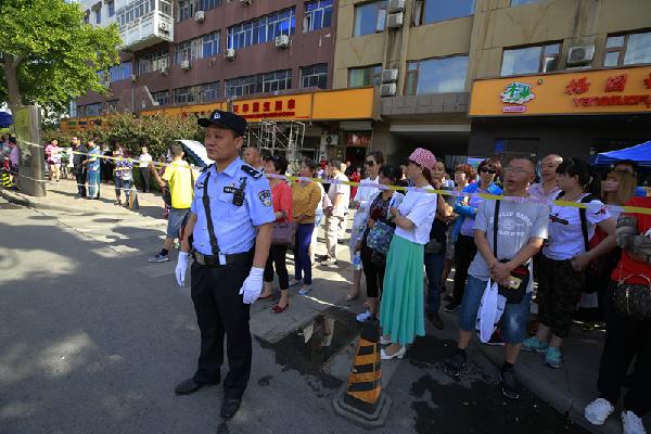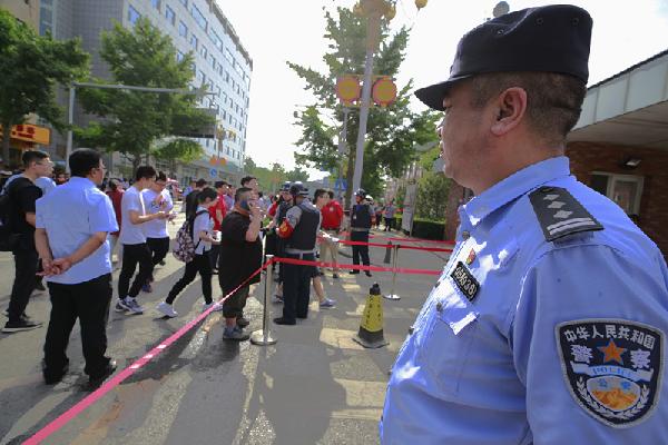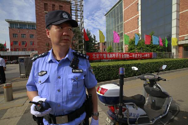 | 大兴警方按照"平安高考"工作要求,结合"夏季治安秩序突出问题整治行动",集全局各相关警种之合力,对高考实施全过程安全监管、对"涉考"违法犯罪进行全时空打击整治、为考生及家长提供全方位安全服务,实现"有力保障考生人身安全、有力保障考点正常秩序、有力保障考试公平公正"的工作目标。今年,大兴区共设有4个考点,6月7日早8点,大兴交通、巡特警、社区民警准时到岗执勤,对考场周边重点路段施行交通管控措施,清理维护考点周边秩序,确保考生安全进入考场,同时每个考点周边配备1辆应急车,如遇考生走错考场、忘带准考证等突发情况,及时为考生提供护送服务。