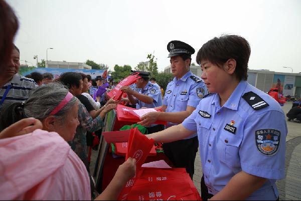 | 6月13日上午,大兴公安分局在鸿坤广场举行启动仪式,正式拉开夏季安全防范宣传季活动序幕,民警现场向群众发放防范宣传材料和简易物技防产品。