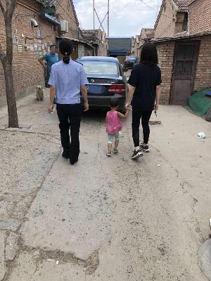 烈日当空之下,一样火热的是民警们的心。待孩子身体和心情有所缓解,民警便带着孩子开始了"寻家之路"。孩子被发现的巷子属辖区鹅房村,典型城乡结合部地区,密集的出租平房在孩子眼中并没有太大区别,无奈之下民警决定步行带着孩子边问边找。功夫不负有心人,孩子在一超市门口认出了自己曾坐过的摇摇车,店铺老板也反映孩子就住在附近,并指出了大致的方位。就这样,一步步走、一点点问,终于在巷子深处一个偏僻的出租大院找到了孩子的家人。"我刚要打电话报警呢,不想孩子就被你们送回来了,太谢谢你们了"。面对兴高采烈的孩子和心急如焚的家人,民警这才都松了一口气,仿佛心中的大石头终于落了地。